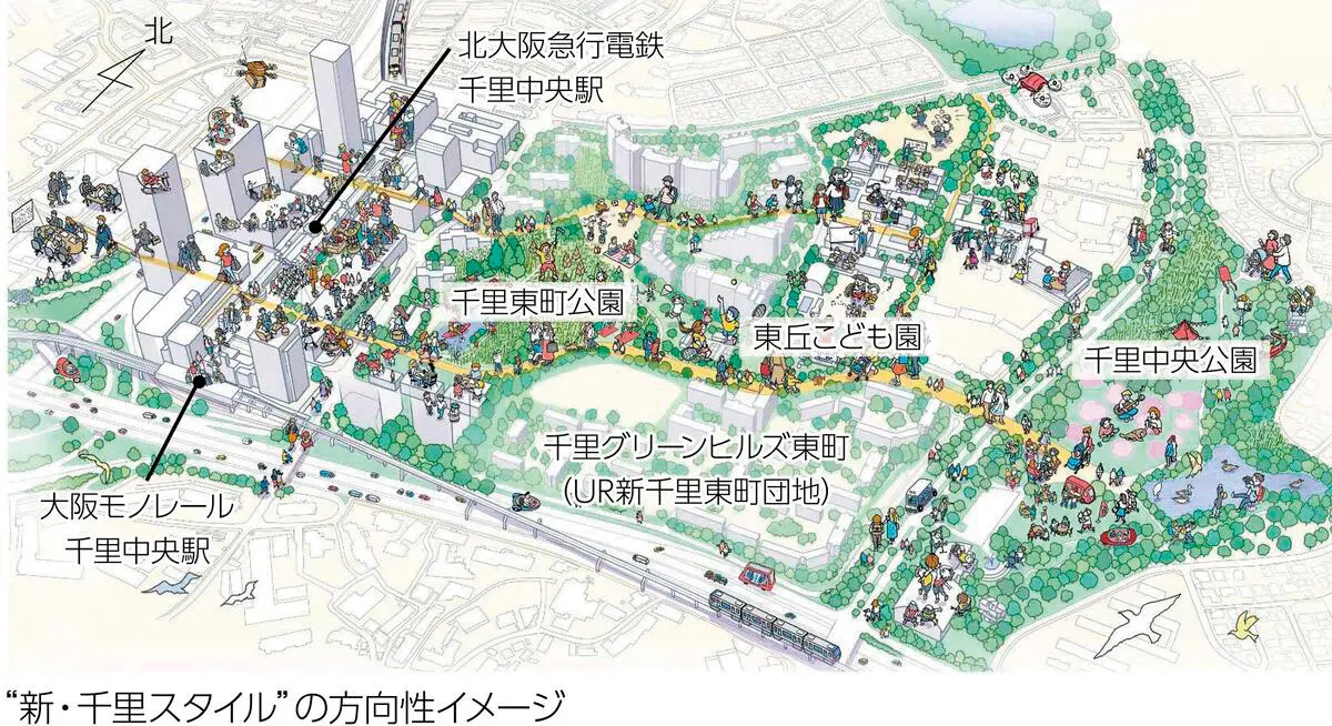 民間投資とあわせて行政としても千里中央駅周辺の千里東町公園や千里中央公園を都会のオアシスとして活かす大胆な公園リニューアルプロジェクトを実行します。
