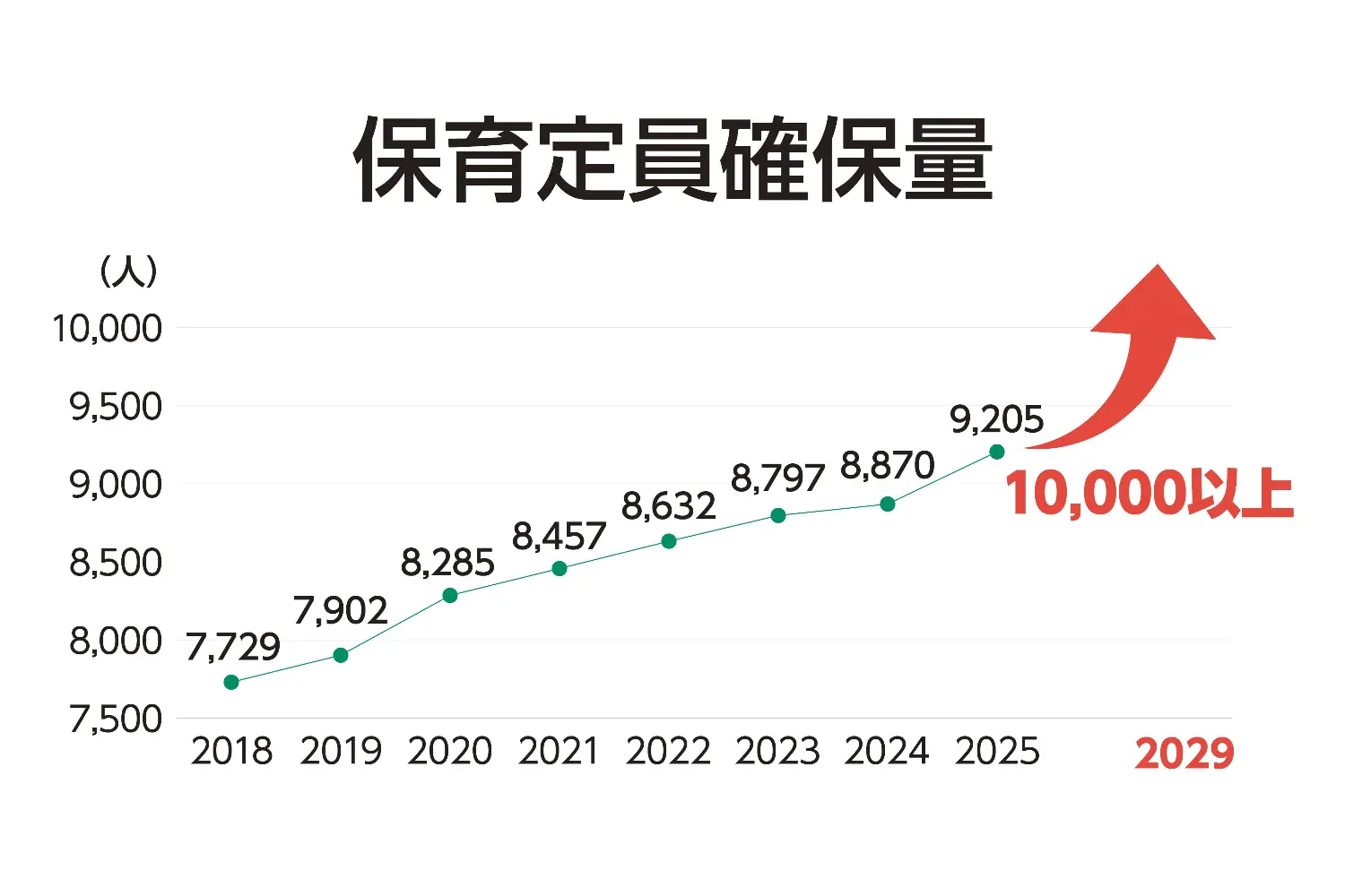 令和7年度からの4年間で45億円の整備費をすでに予算化し、令和11年度までに新たに1,000人以上(令和7年4月比)定員を増やす取組みを現在進行中です。